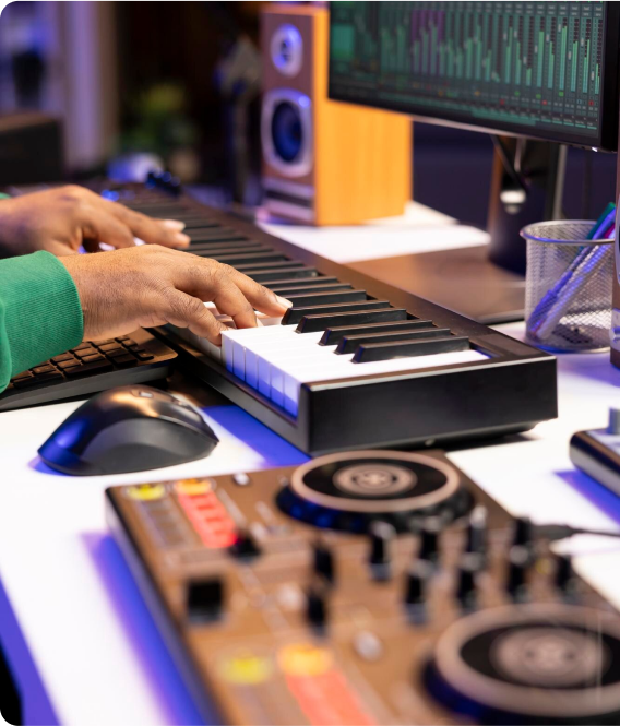 Trabajemos juntos en la creación de canciones desde cero. Si tienes letras, melodías o solo una idea, convertirlas en canciones será el primer paso.